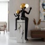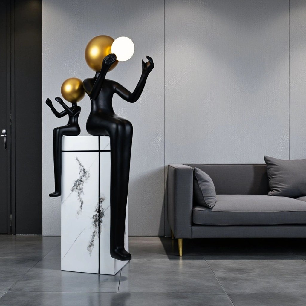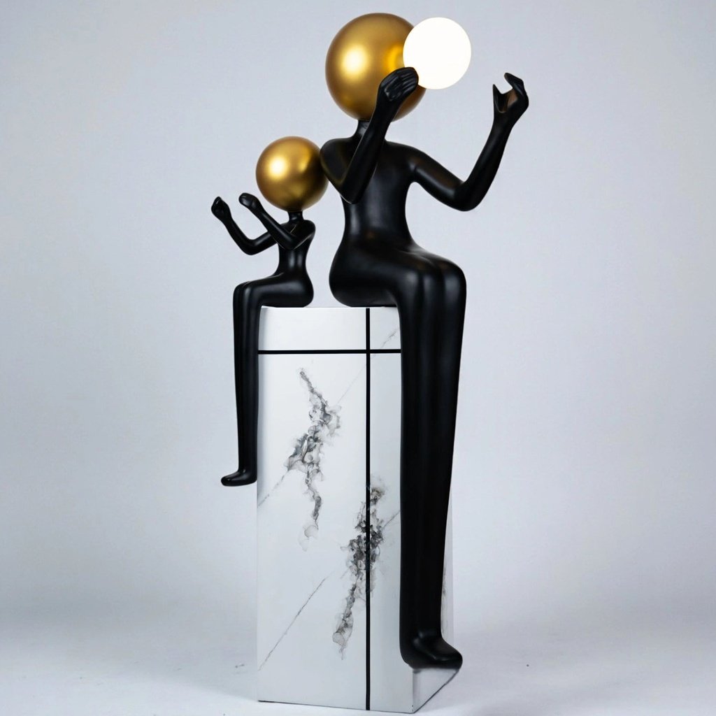 The sculpture tells a story of shared light and hope. One figure lifts a luminous orb, symbolizing the gesture of illumination and warmth, while the smaller companion mirrors this wonder. It’s a poetic representation of how light, both literal and symbolic, can be shared and appreciated, adding a unique emotional touch to your home.
