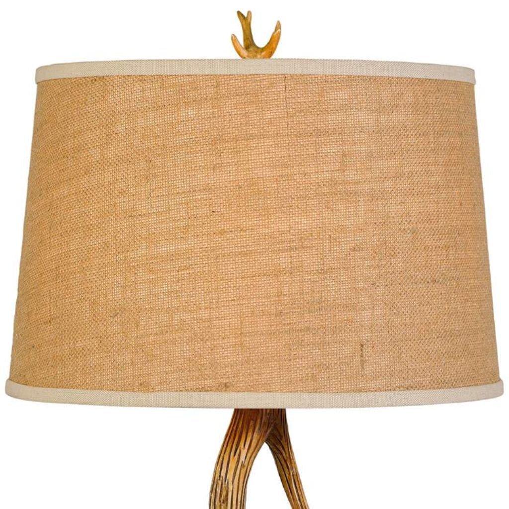The defining feature of this table lamp is its intricately crafted faux deer antler base. Made from durable cast resin, the base captures the organic curves and rugged texture of real antlers while offering long-lasting strength and stability. Measuring 9 1/4 inches wide by 9 inches deep, the sculptural foundation grounds the design beautifully. The antler figurine body creates a dramatic focal point, making the lamp ideal for cabins, lodges, or rustic-themed living rooms.