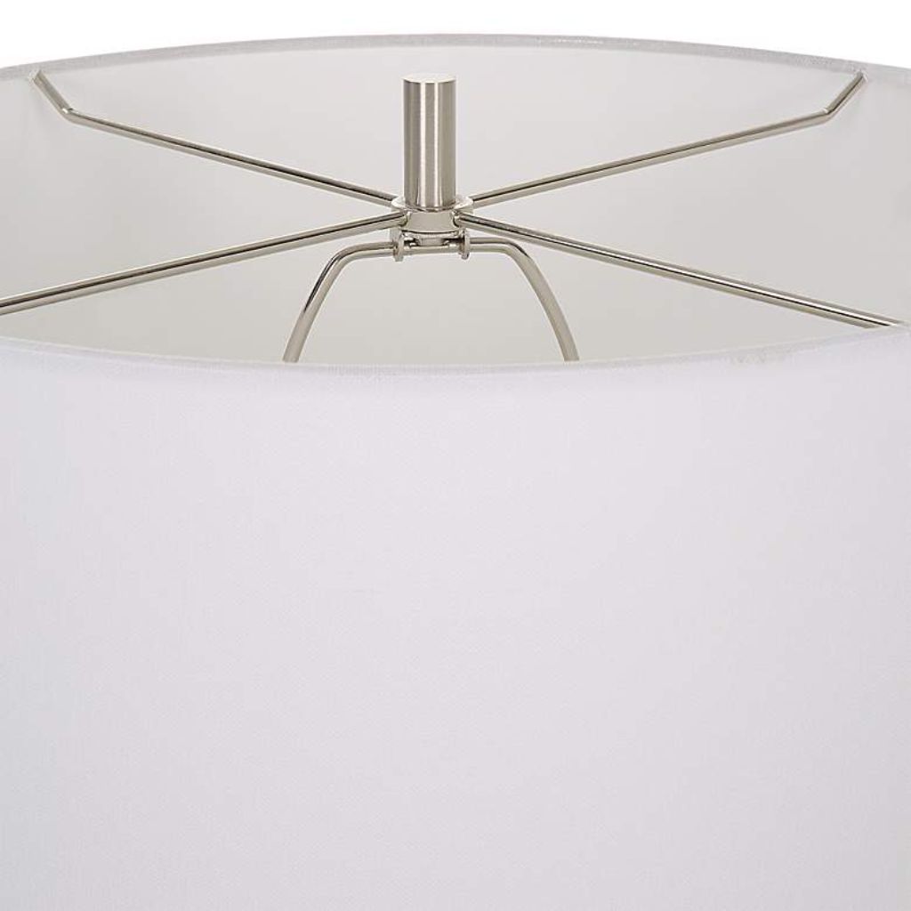 • White drum shade delivers clean, balanced illumination