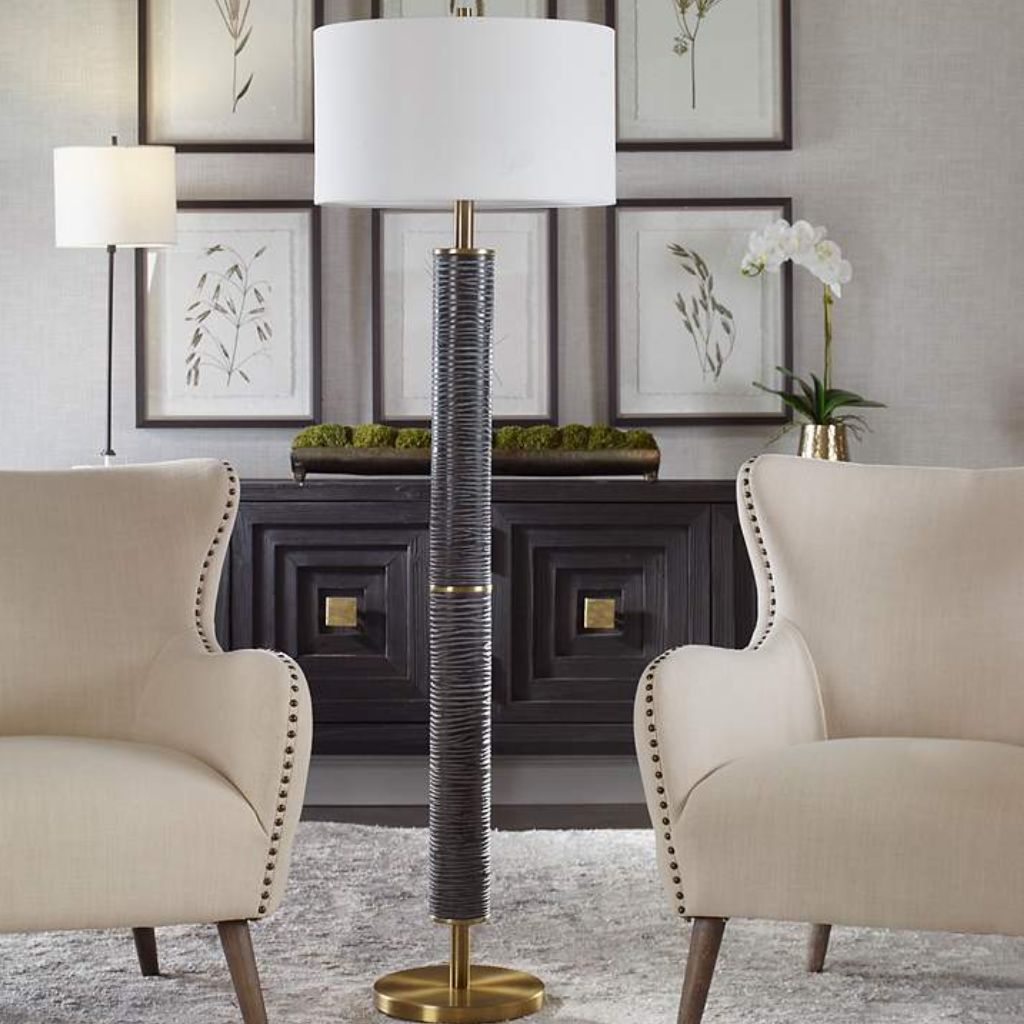Elevate your interior with the bold elegance of the Summit Contemporary Rustic Floor Lamp by Uttermost, a beautifully crafted lighting piece that blends modern design with rustic character. Designed to serve as both a functional light source and a decorative accent, this luxury floor lamp enhances living rooms, bedrooms, and seating areas with warmth, texture, and refined style.