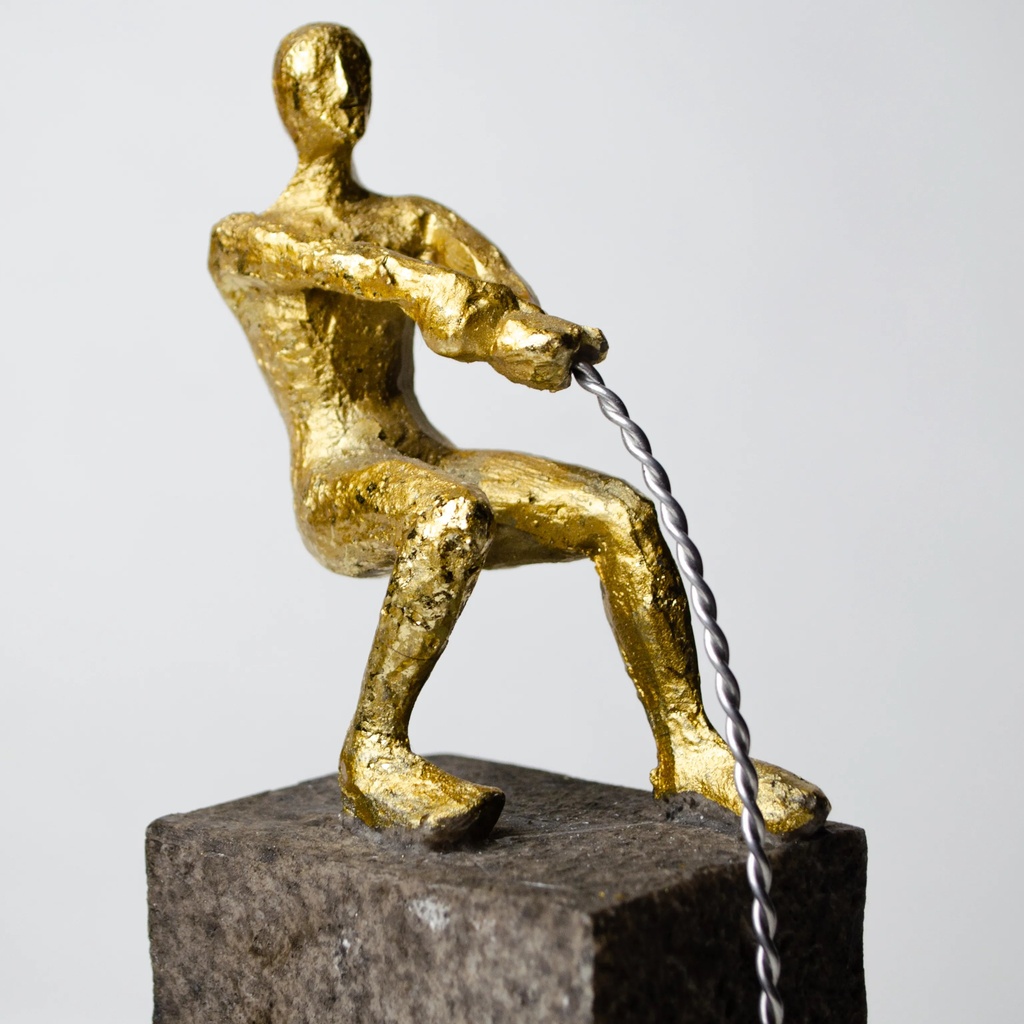 Home Sculptures THE PULLING FIGURINE GOLDEN