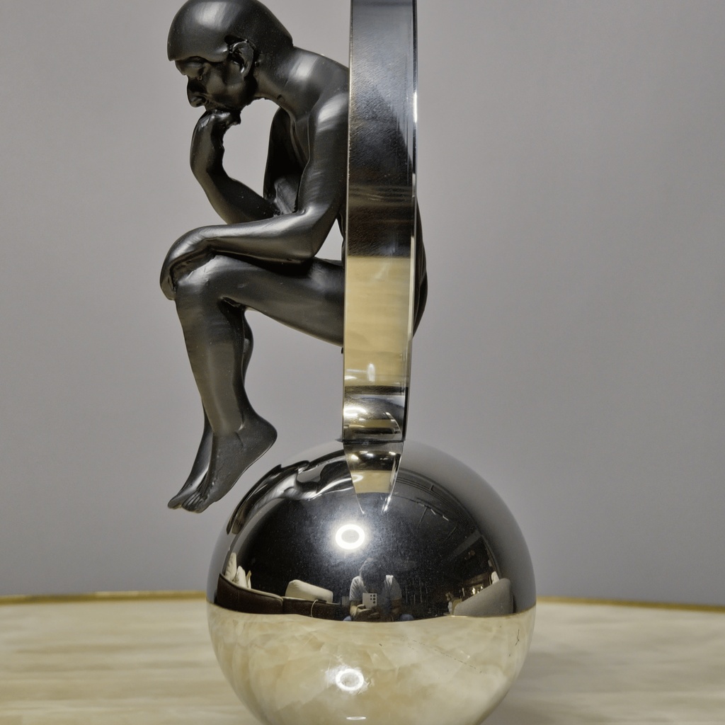 Add a touch of thoughtful elegance to your space with the Thinker on Chrome Sphere Small. This stunning piece combines art and modern design, making it a striking addition to any room. It’s perfect for sparking conversations and inspiring deeper thoughts.