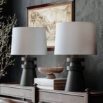 The shade is selected to complement the base in both proportion and finish. Fabric shades in linen, cotton, or polyester diffuse light evenly and soften the overall glow. The shade’s profile — whether drum, empire, or cone — is chosen to keep the lamp’s silhouette balanced and intentional.