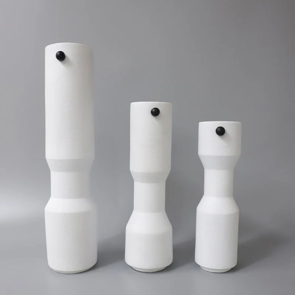 The cylindrical profile is precise and deliberate — no unnecessary curves or decoration, just clean proportional geometry from base to opening. The structured lower body grounds the piece visually while the extended upper form draws the eye naturally upward.