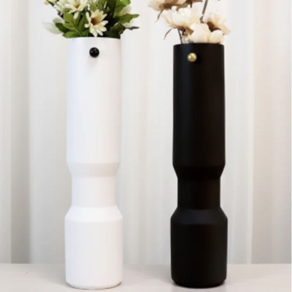 An elongated cylindrical vase in resin, the Vertical Harmony is built around clean geometry and strong vertical presence. Its structured lower form and narrow opening make it as practical as it is architectural — supporting tall stems upright without overcrowding, while the smooth contoured body reads as a composed resin sculpture when left unfilled.