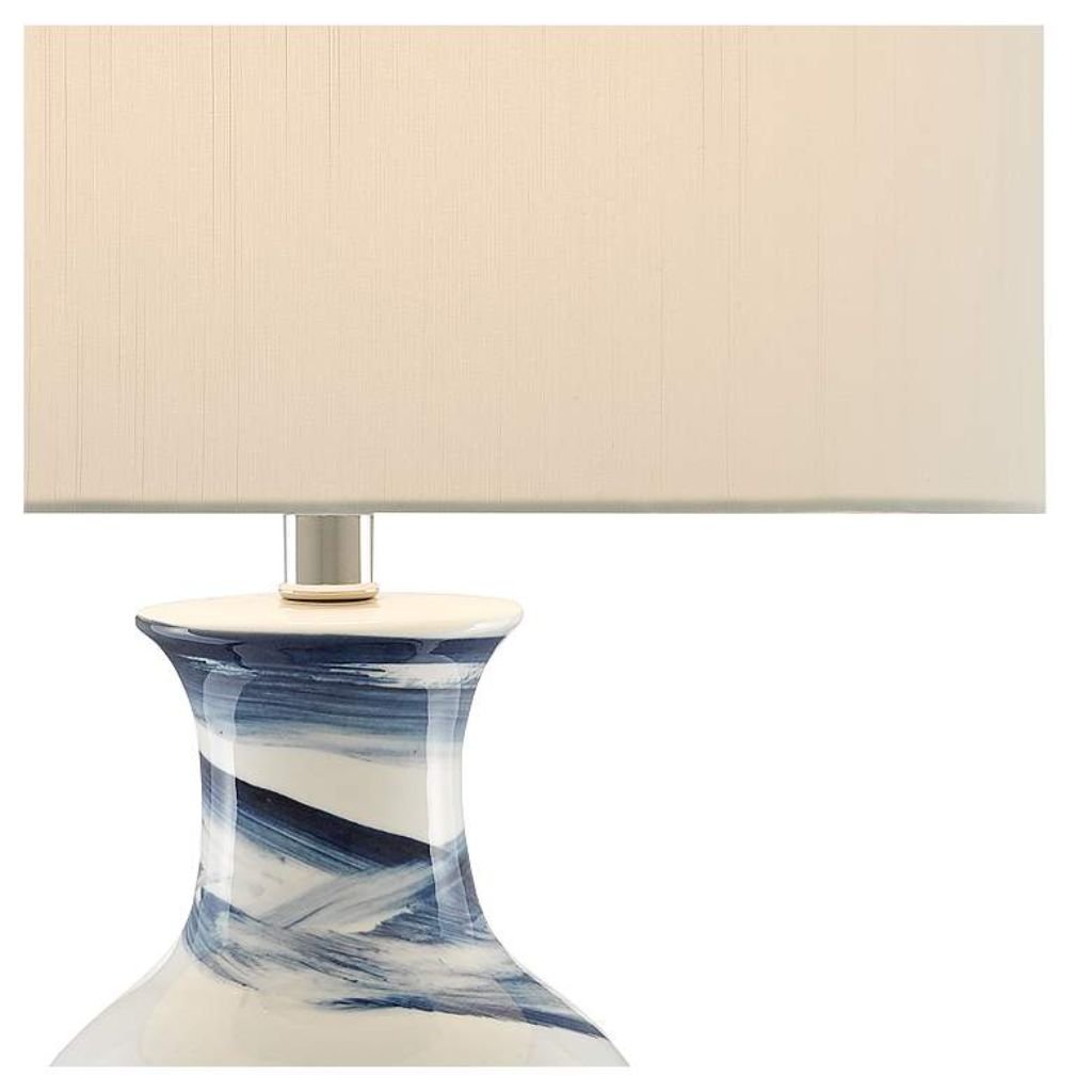 White and blue finish with delicate brushstroke detailing