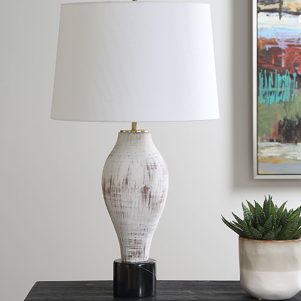 This lamp integrates easily into a range of room styles—from contemporary and transitional to traditional and eclectic. The proportions are well-suited for a nightstand, side table, or console placement, where its height and shade width create a balanced visual presence. It reads as considered and complete rather than generic.