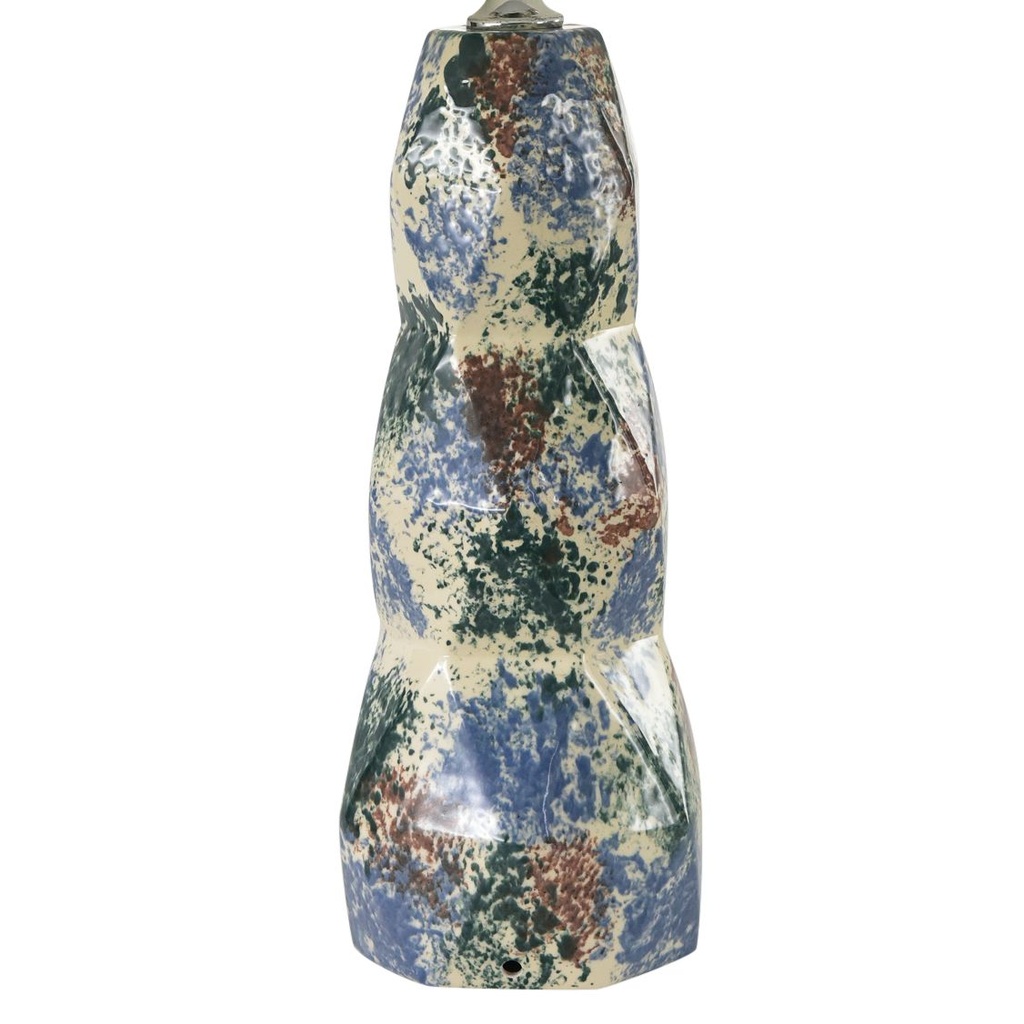 The confetti glaze is applied over the ceramic surface, creating a speckled pattern of white tones that gives the lamp texture and movement. It is a finish that looks handmade and organic rather than industrial.
