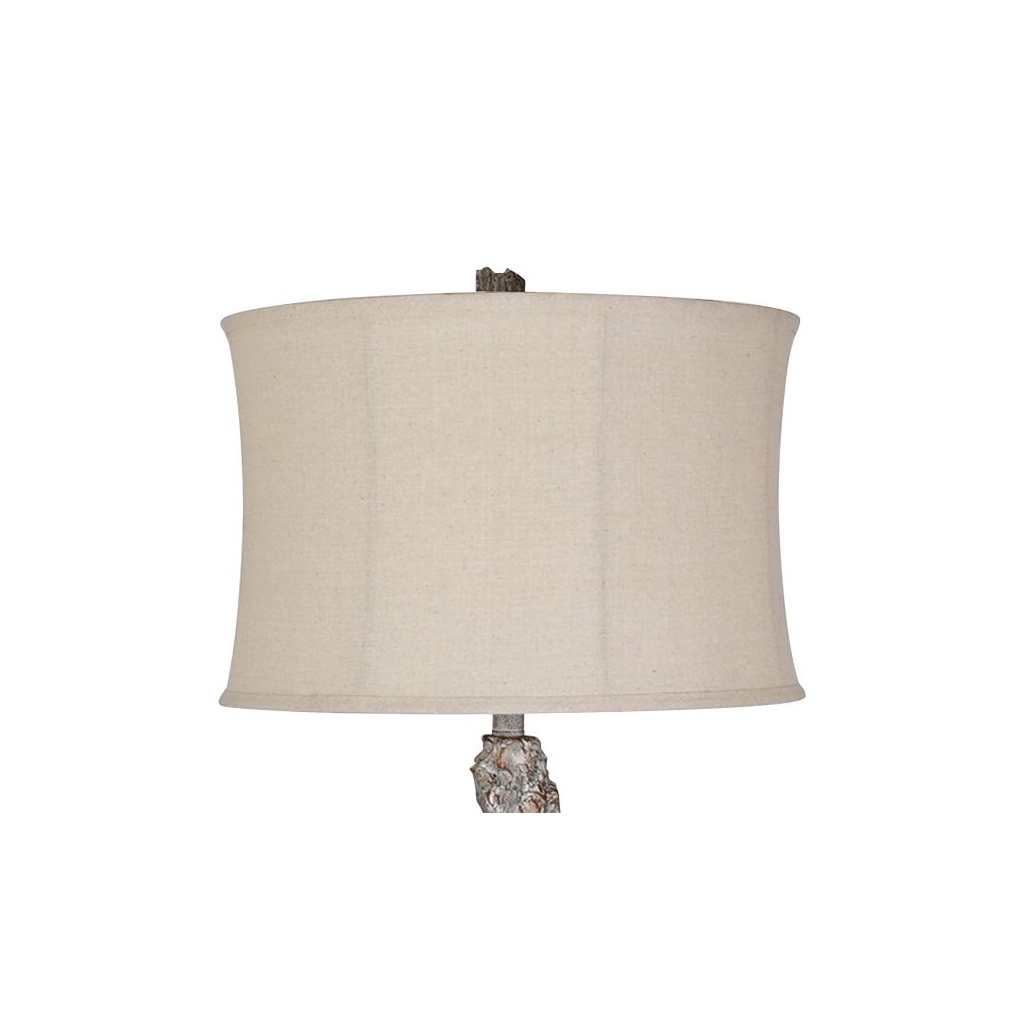 The white-washed sand stone finish over cast resin gives this lamp the look and texture of sun-bleached natural stone. It fits naturally into beach house decor alongside white walls, light wood, and woven textures.