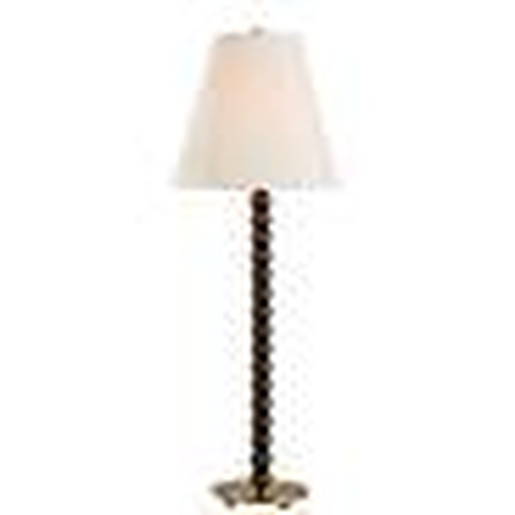 Crafted from a column of stacked dark walnut wood spheres punctuated by brass accents, the Uttermost Gallus is a wooden walnut sphere table lamp that earns its place through structural ingenuity as much as visual appeal. Each walnut sphere sits precisely upon the next, the warm grain of the wood reading differently at every level as the stack rises 34.0 inches from base to shade. Brass accents punctuate the column at intervals, adding metallic warmth that bridges the dark wood and the crisp white linen shade above. The tapered round hardback shade keeps the silhouette clean and deliberate — a composed finish to a base that is anything but ordinary. This is a lamp that rewards the second look as generously as it delivers on the lamp‘s first impression.
